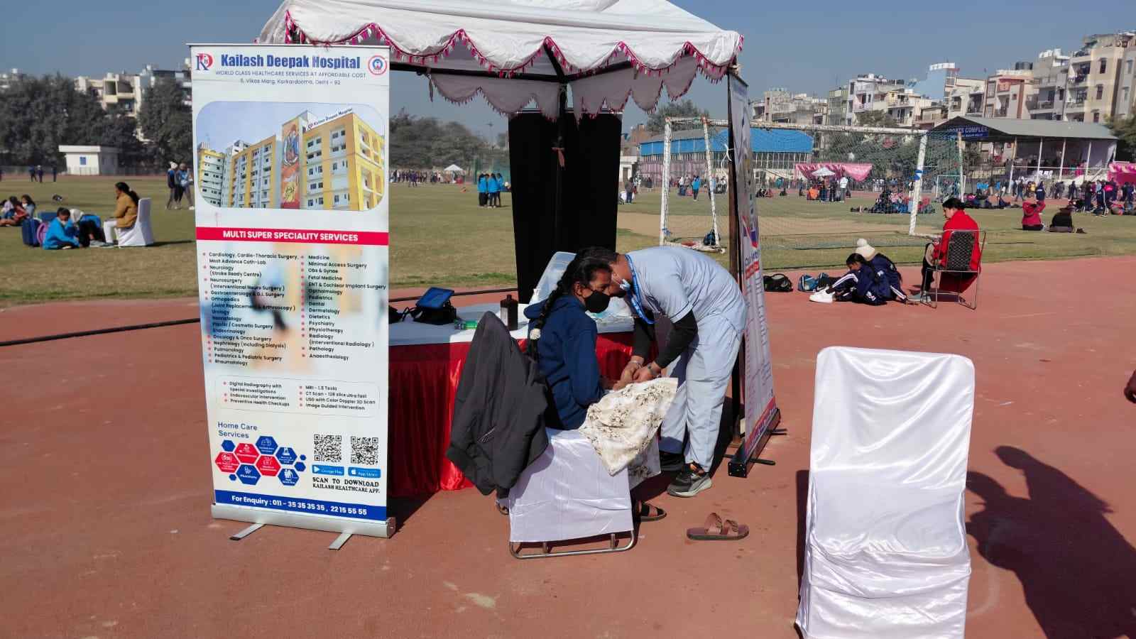 Continuing its commitment to community health and safety, Kailash Deepak Hospital organized a dedicated First Aid and Ambulance Service camp at the East Vinod Nagar Stadium from January 10–12, 2026.