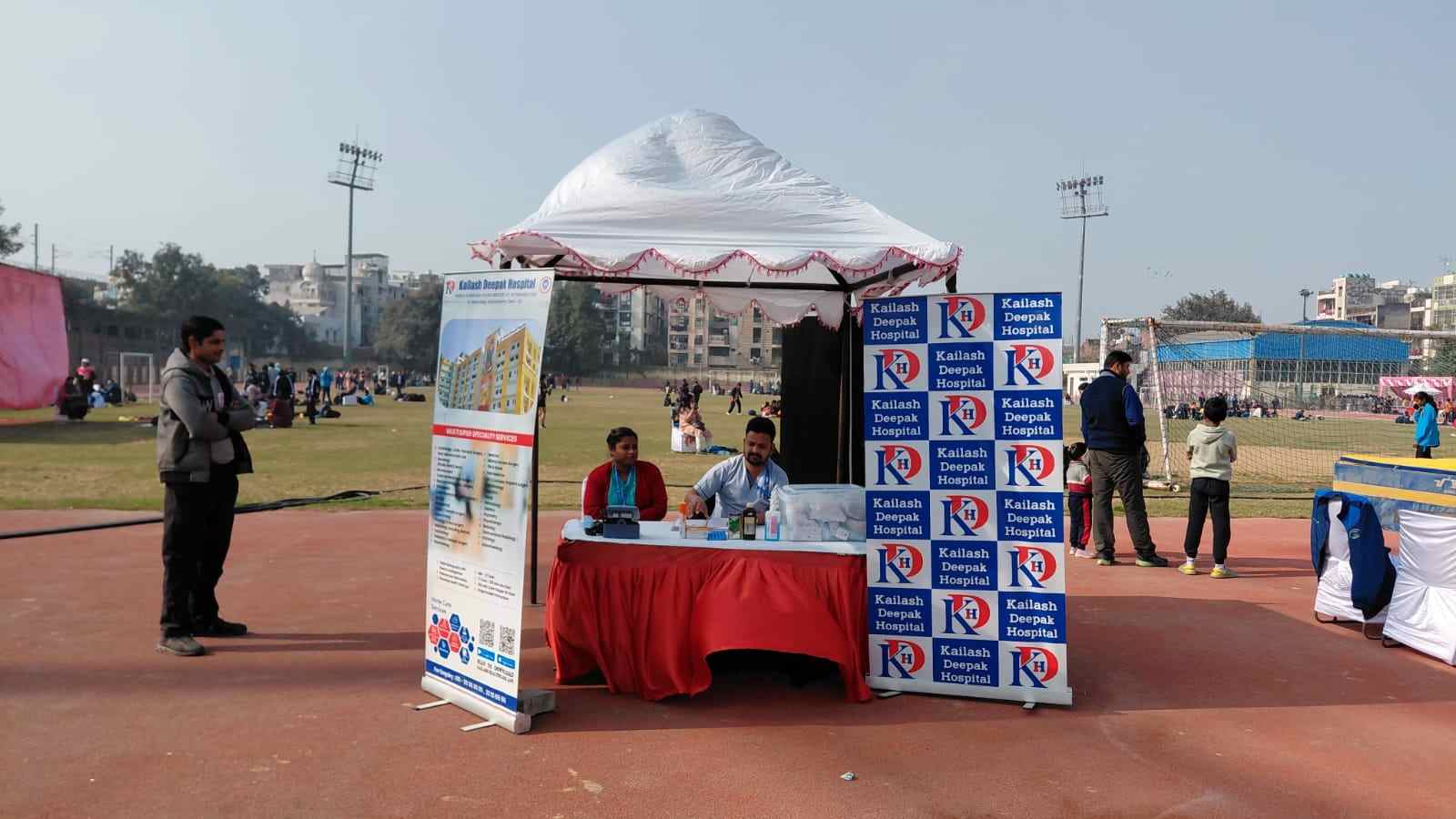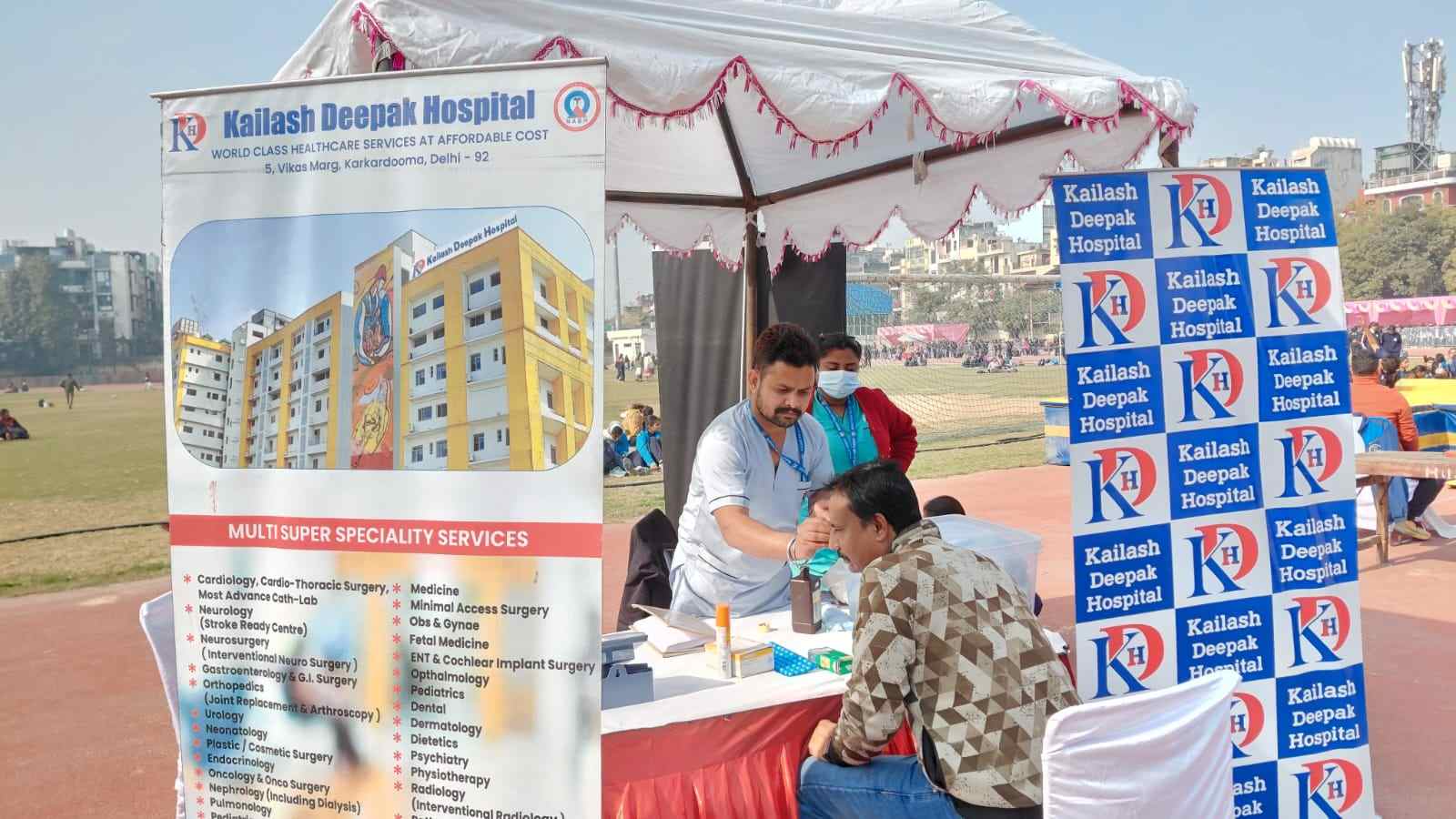Continuing its commitment to community health and safety, Kailash Deepak Hospital organized a dedicated First Aid and Ambulance Service camp at the East Vinod Nagar Stadium from January 10–12, 2026.